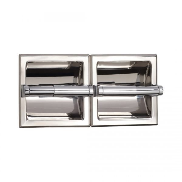 Crafted from durable #304 stainless steel, with die-cast zinc alloy posts and two spring-loaded, chrome plated plastic rollers, this recessed double roll toilet paper holder is available in a Polished Chrome finish.